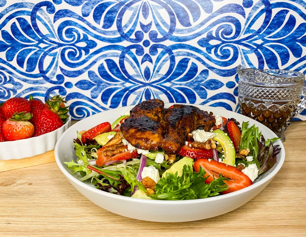 - Drizzle balsamic glaze over the chicken and salad (Optional)