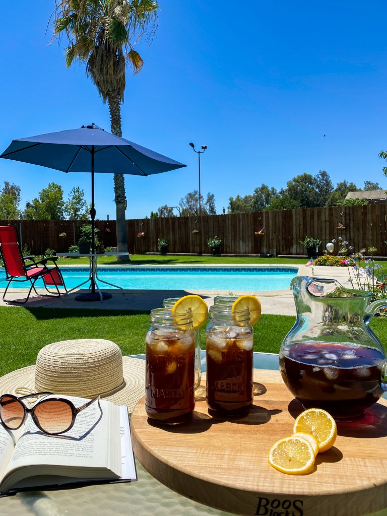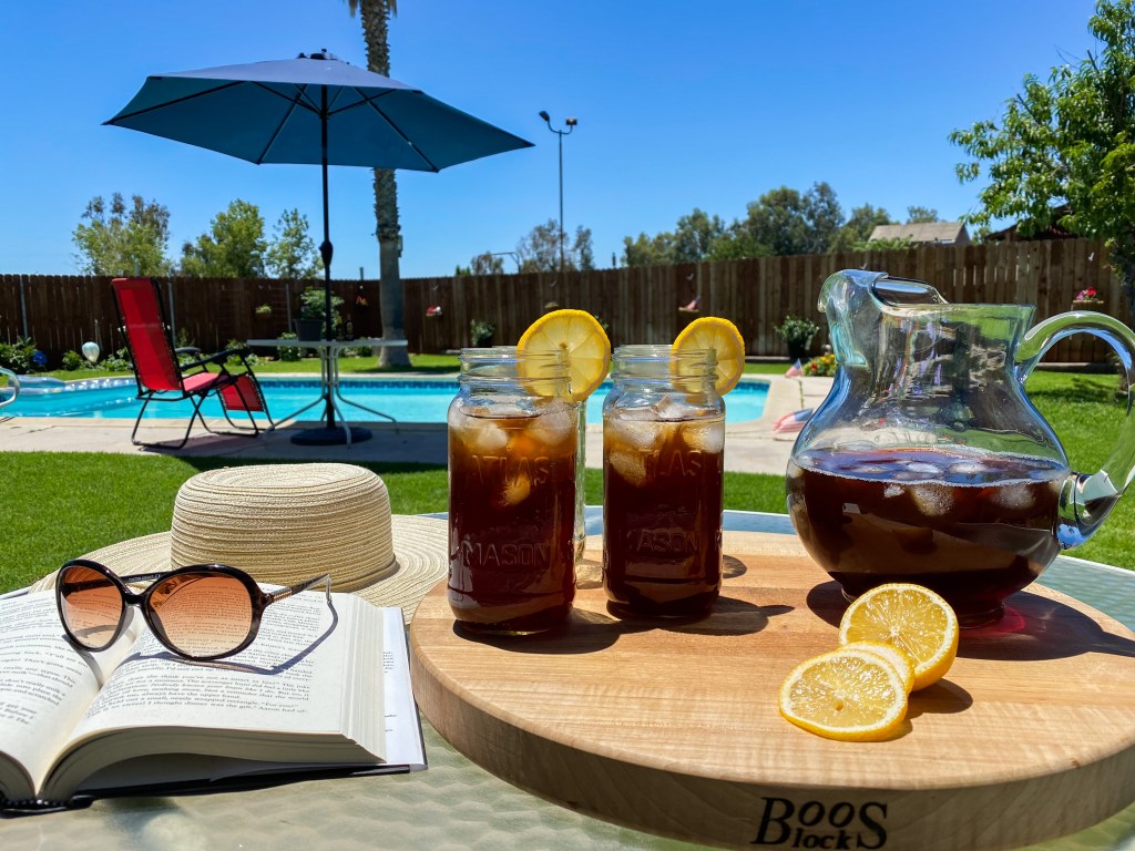 There is nothing like a hot summer day, in the pool with a big glass of iced cold sweet tea.