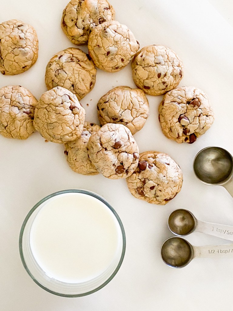 Now time to sit down relax with a tall glass of milk and enjoy your oh so yummy fluffy chocolate chip cookies!